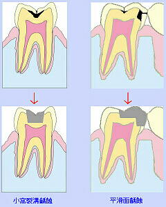 一般に小窩裂溝の方が虫歯になりやすい