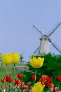 真です。風車とチューリップはよく似合いま