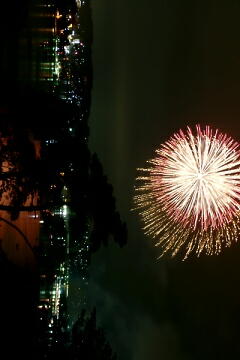 の場所は手前の松の木が邪魔で打ち上げ地点