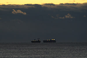 6時37分、水平線上の2隻の船舶が見えます。